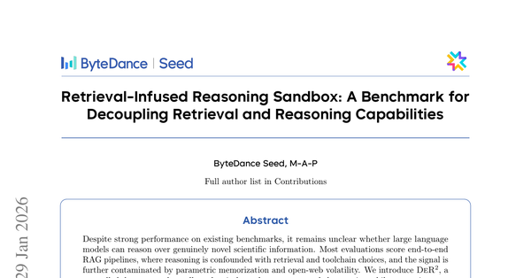 DeR2を紹介するで。これは科学的問題解決における**検索を取り入れた推論**を評価するためのコントロールされたベンチマークやねん。このベンチマークは、エンドツーエンドの検索拡張生成(RAG)やエージェントベースの深層研究評価では診断しにくい失敗モードを明らかにするために設計されてんねん。
