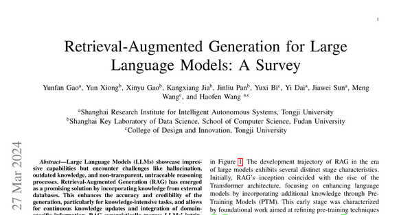 RAGの分野はめっちゃ急成長してるんやけど、全体の流れを明確にする体系的なまとめがまだなかったんや。このサーベイは、そのギャップを埋めようとしてんねん。RAGのプロセスをマッピングして、その進化と将来予測される道筋を描いとるで。LLM内でのRAGの統合に焦点を当ててな。