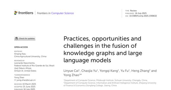 Cai L, Yu C, Kang Y, Fu Y, Zhang H and Zhao Y (2025) ナレッジグラフと大規模言語モデルの融合における実践、機会、課題。Front. Comput. Sci. 7:1590632. doi: 10.3389/fcomp.2025.1590632