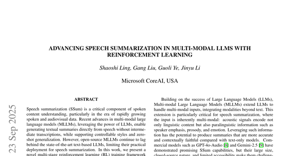 - **新しいトレーニングの枠組み:** MLLMの音声要約のために、指示追従・モダリティの整合性・言語横断的な汎化をまとめて改善する、新しい多段階RL学習フレームワークを提案したで。